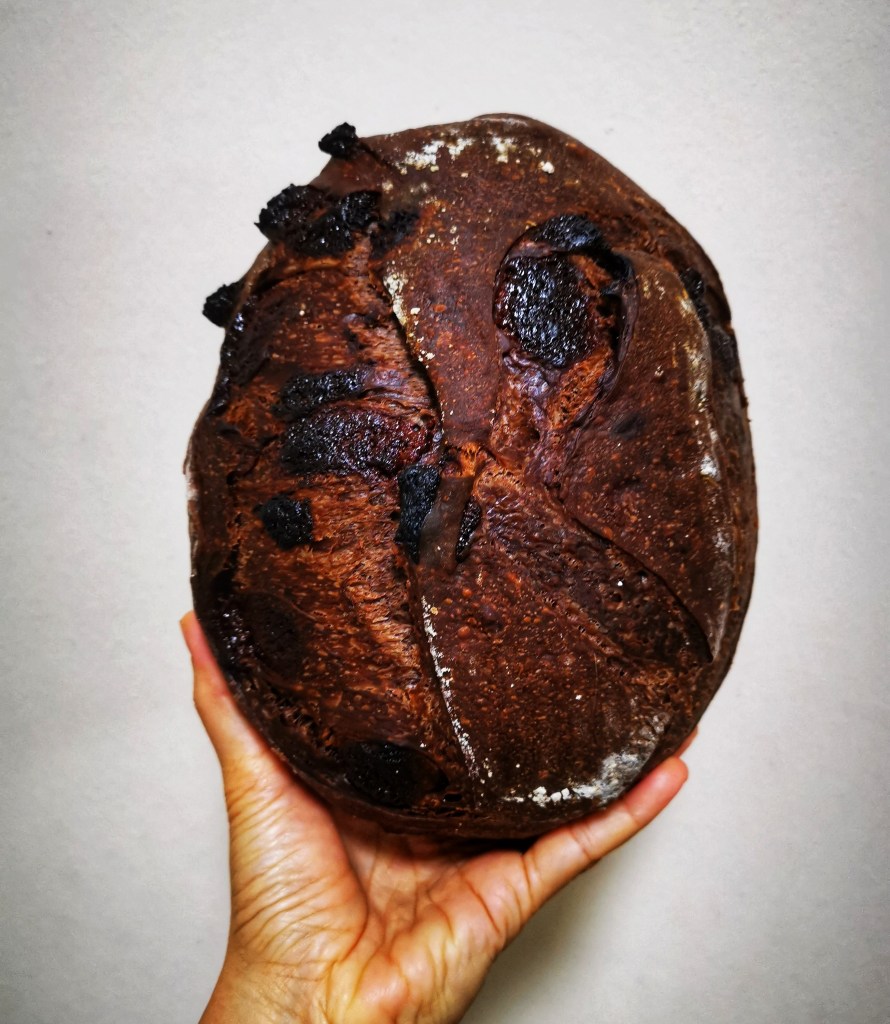Sourdough bread with valrhona cacao and chocolate. Savoury accoutrements – cured wagyu and joselito pork.