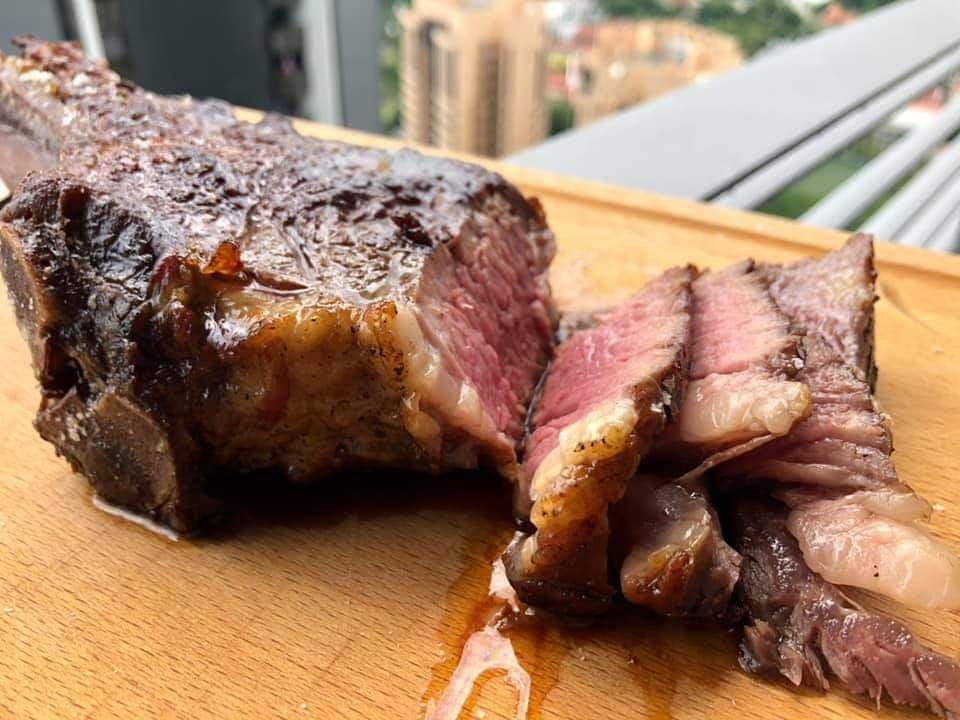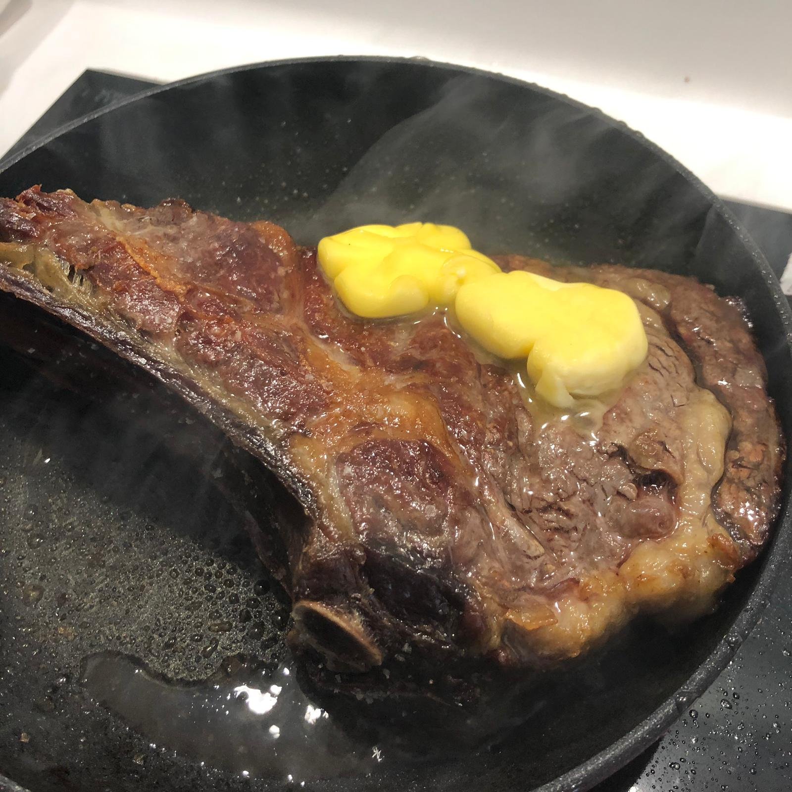 “Super happy to cook up a Sunday feast of dry aged steak and pork from Chef Shen. I followed her simple instructions to cook the meats in the oven followed by searing the meats over the stove and basking them with lots of butter. It was quite exciting waiting in anticipation for the steak to sizzle up and the excitement of that first slice into the steak.”